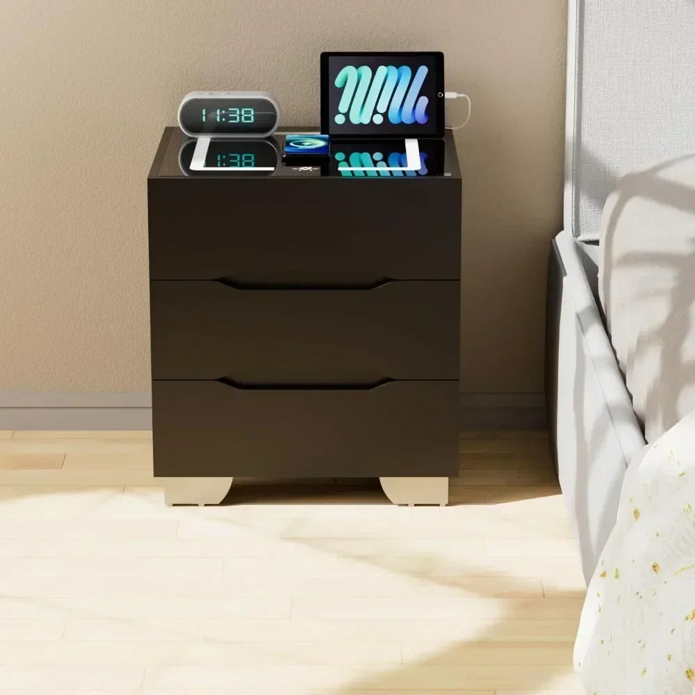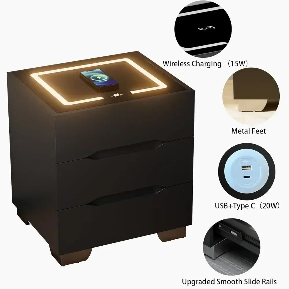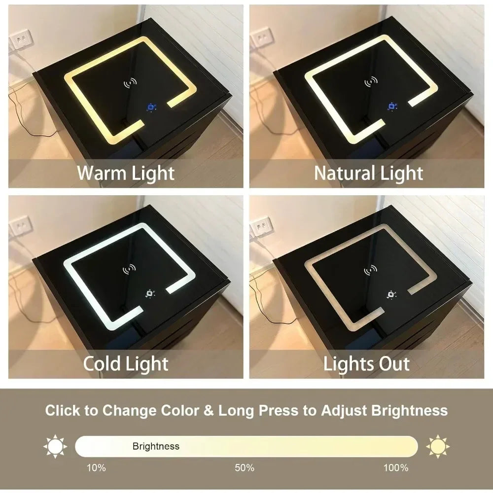 Modern Nightstands with LED Lights, Charging Station & Sensor