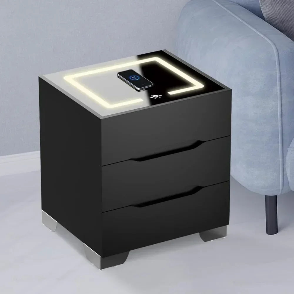 Equipped with drawers for ample storage, these nightstands offer practical solutions for keeping your bedside essentials organized. Their sleek design complements a variety of bedroom decors, combining modern technology with stylish storage to create a functional and sophisticated addition to your furniture collection.