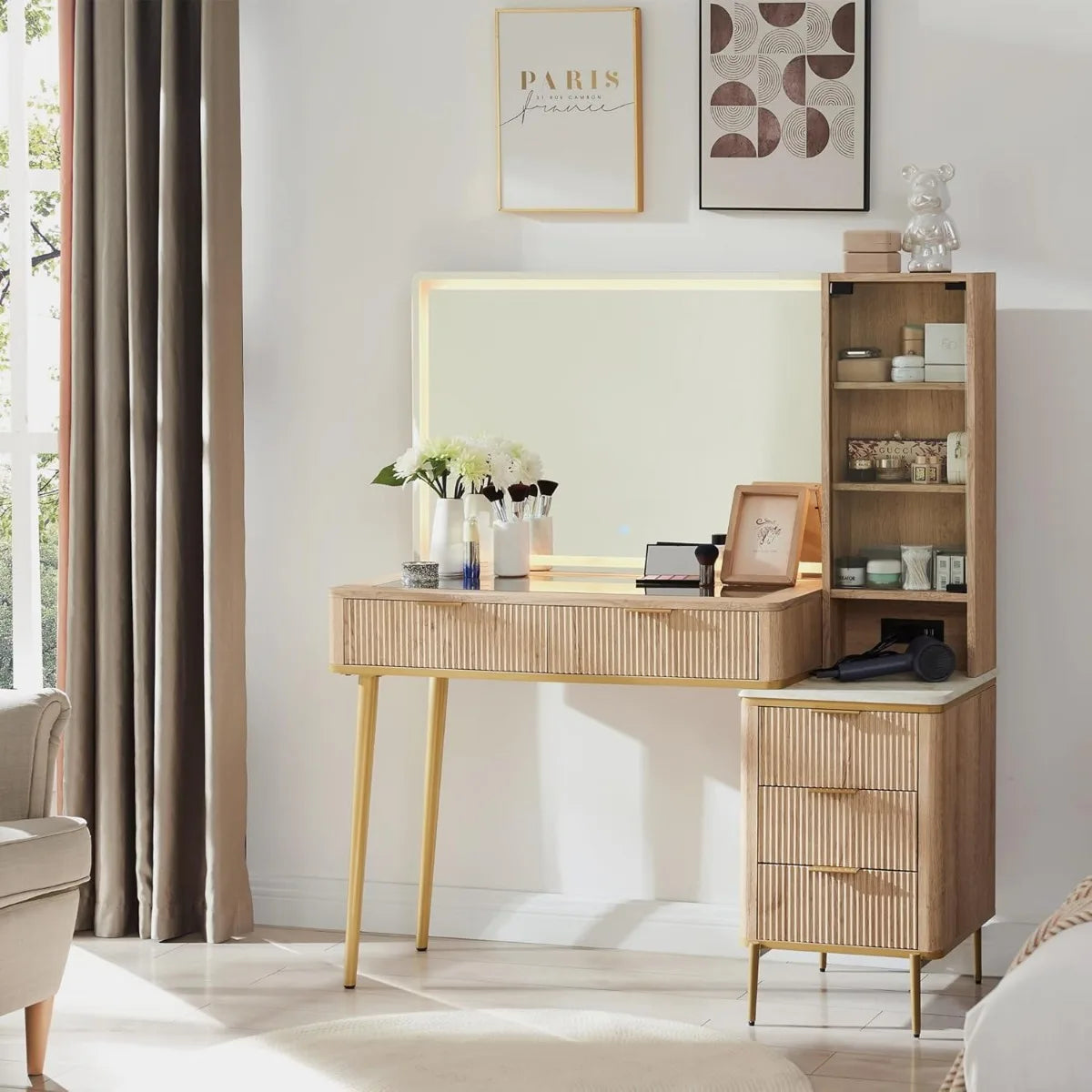 Ideal for those seeking a sophisticated and functional beauty setup, the T4TREAM vanity desk provides an elevated experience with its high-definition mirror and spacious design.